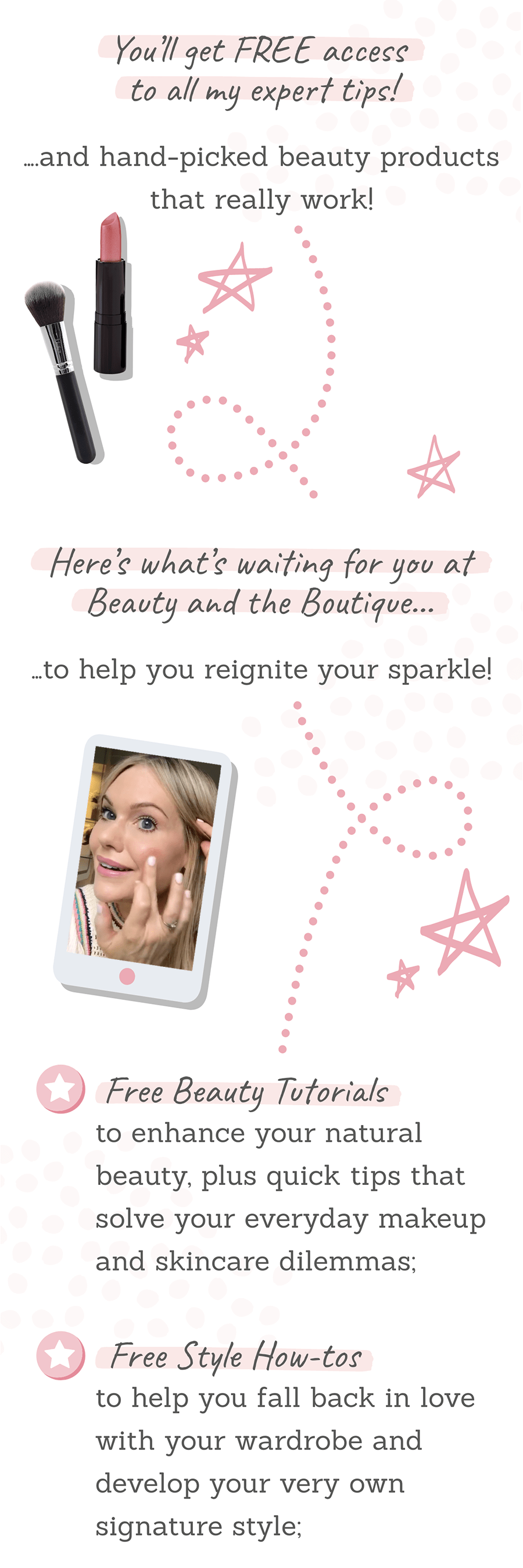 I’ll help you feel brand new with hand-picked beauty products and life-changing confidence, style & makeup tips that, together, reignite your sparkle, and help you feel renewed!