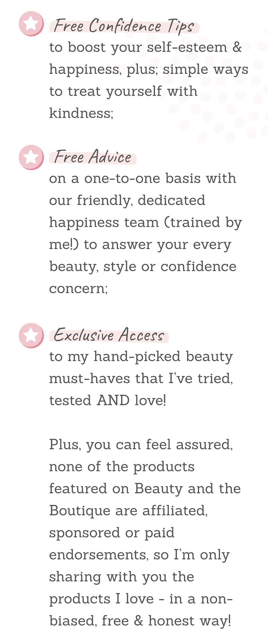 Can't recommend enough!“ Their customer service is out of this world, they always get back to you with the answer (and more) Katie does brilliant tutorials online, from fashion to beauty to confidence... and her passion and warmth shines through. I can't recommend Beauty and the Boutique enough! ”Grace