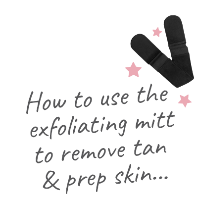 Start with the exfoliating mitt to gently buff away dull, dry skin and build-up, creating the smoothest canvas for your tan to glide on seamlessly, last longer, and glow brighter.