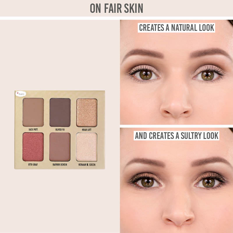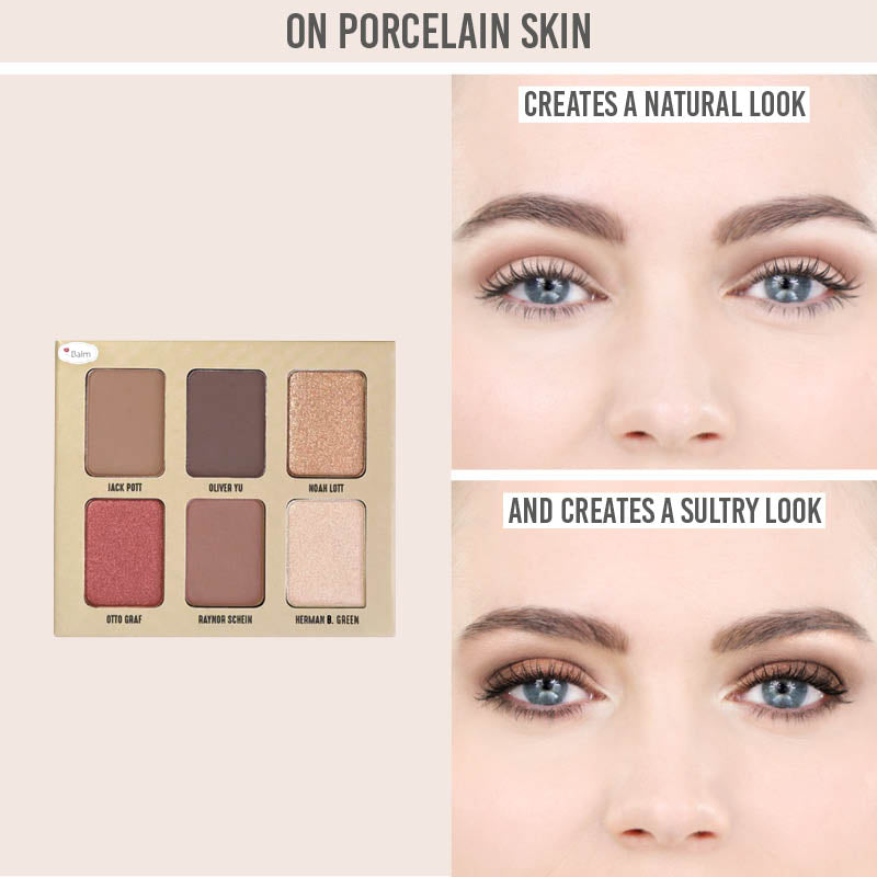 The Balm Cosmetics Male Order Eyeshadow Palette in First Class Male on porcelain skin