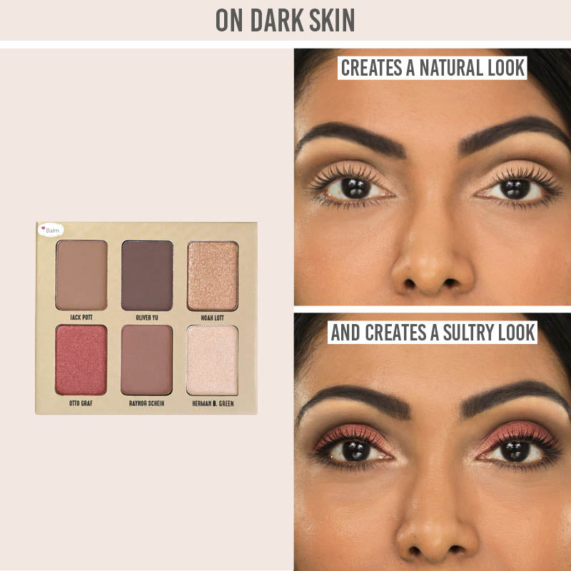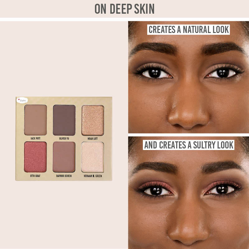 The Balm Cosmetics Male Order Eyeshadow Palette in First Class Male on dark skin