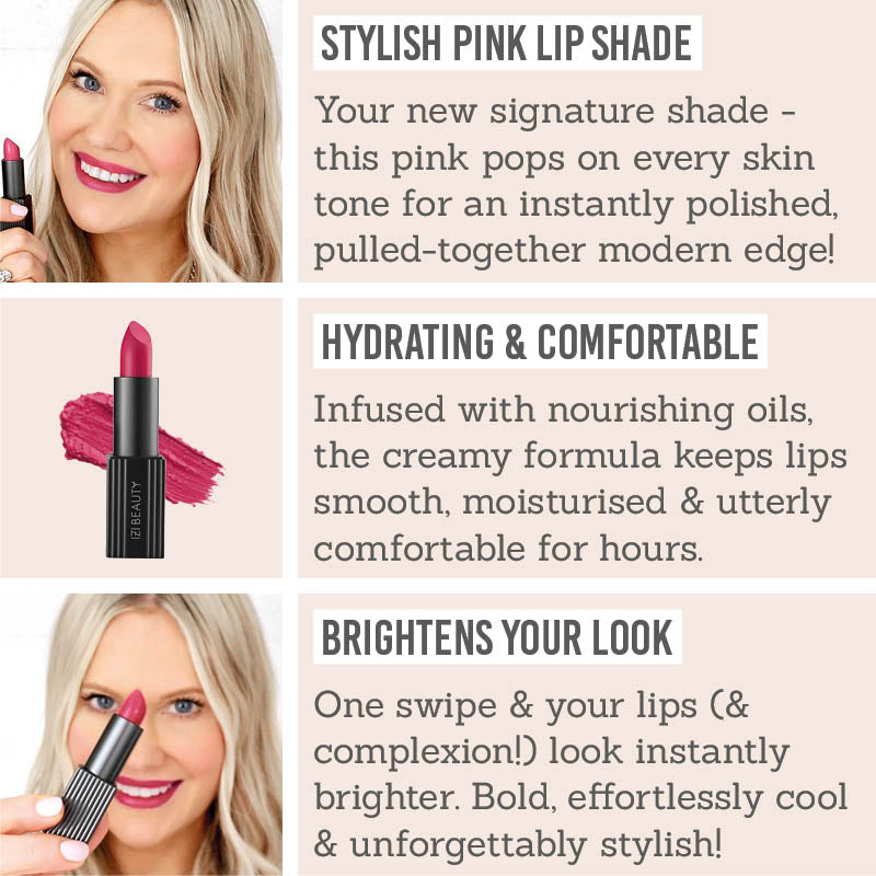 IZI Beauty Empowered Lipstick in Resilient - Key Benefits: stylish pink lip shade, hydrating & comfortable, brightens your look