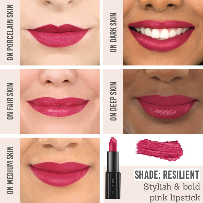 IZI Beauty Empowered Lipstick in Resilient on different skin tones