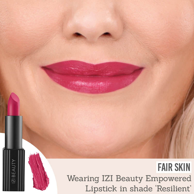 IZI Beauty Empowered Lipstick in Resilient on fair skin